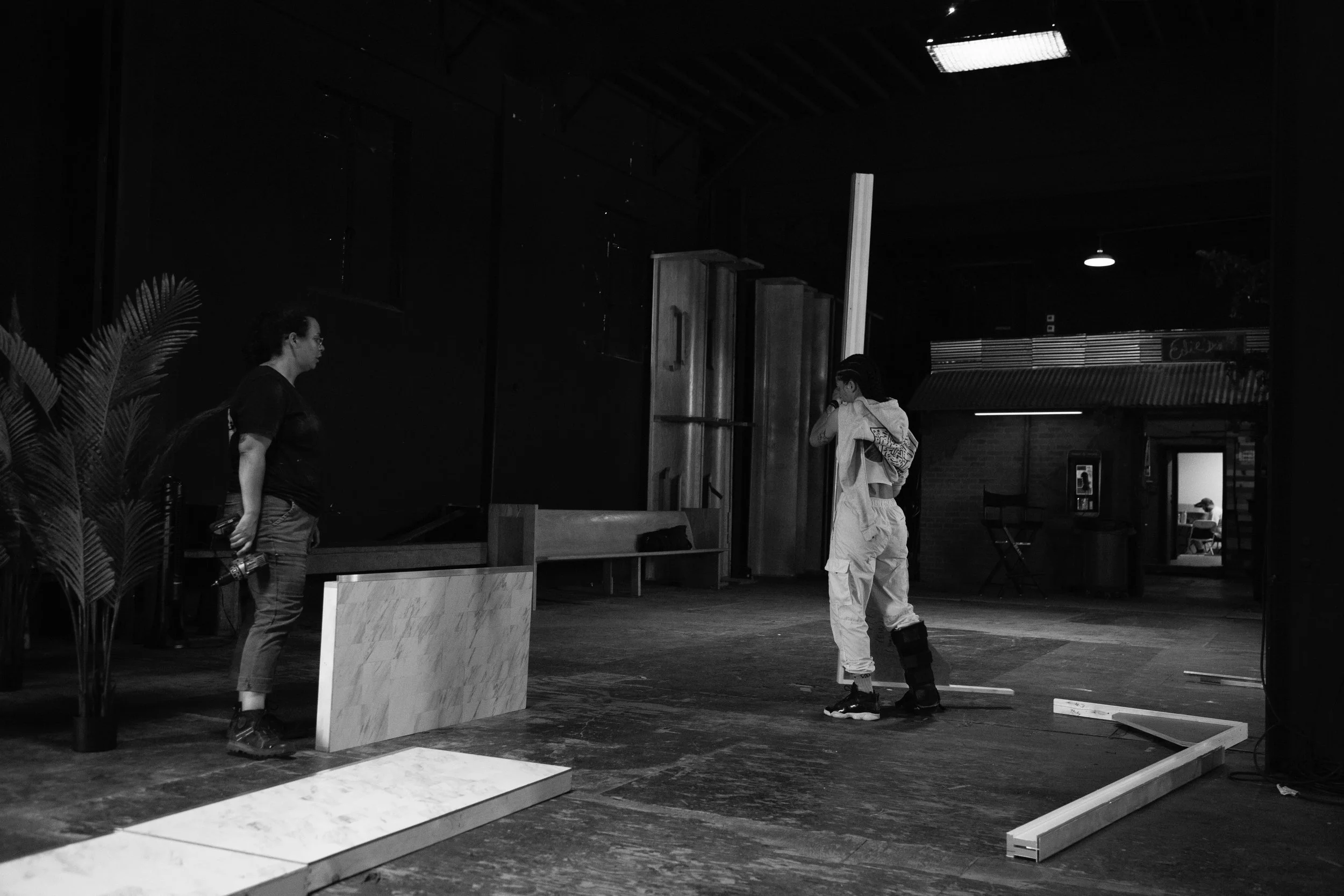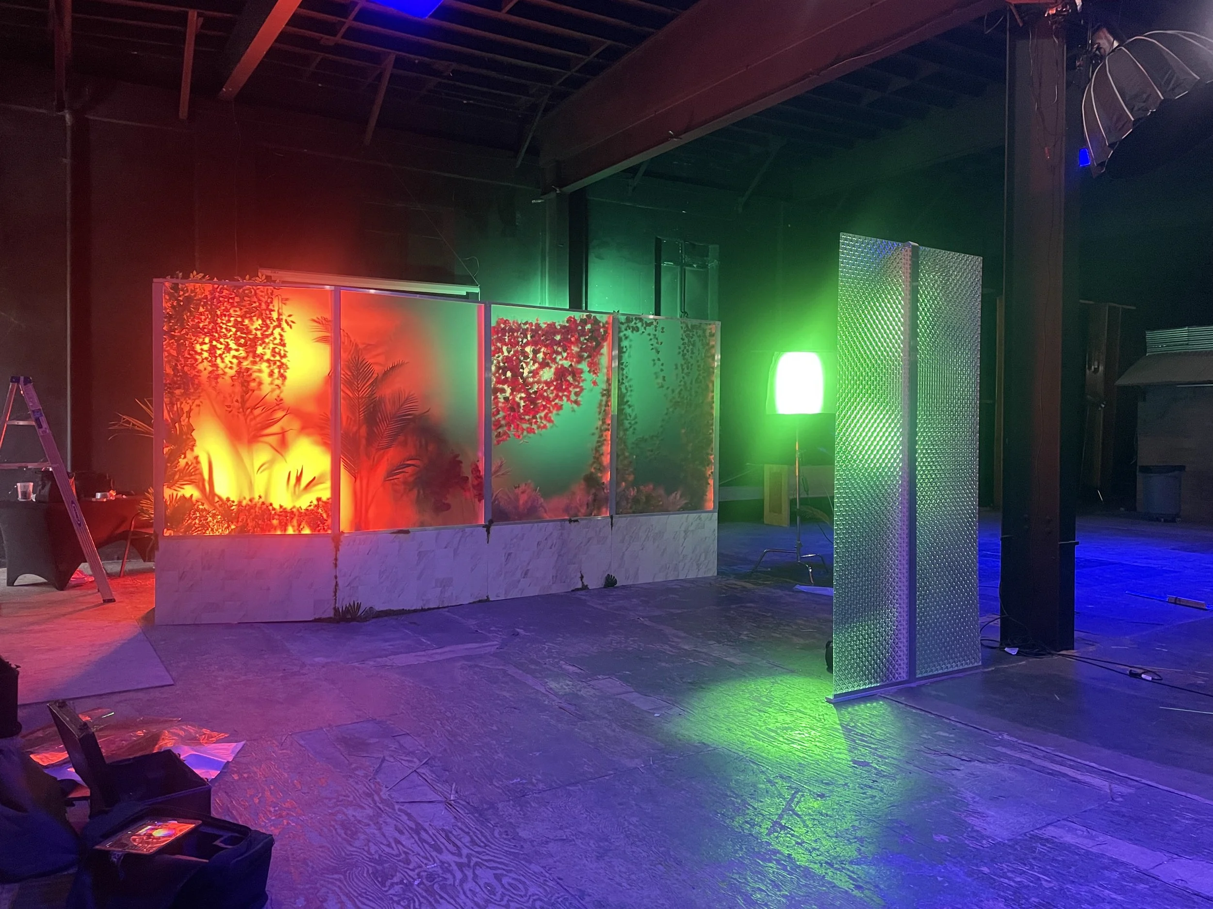 This stage design was a passion project, meant to be a modular system that’s easy to put together and take apart quickly and could fit in a cargo van. I engineered a quick and easy way to receive plexiglass with aluminum t-channel secured into set wall jacks.